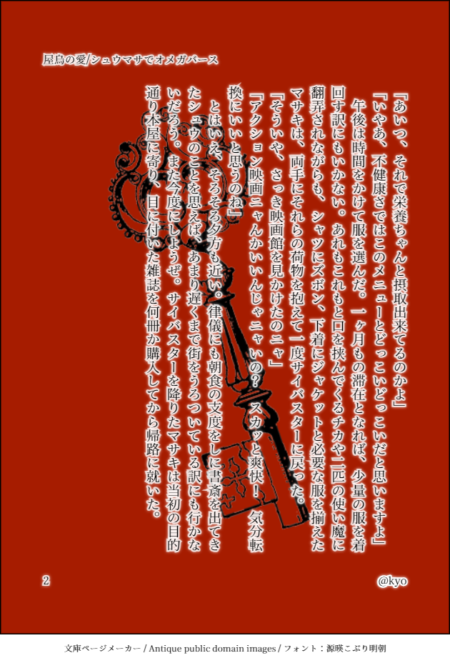 そろそろ折り返しを越えたシュウマサオメガバースなんですけど、そうすると終わりを意識しなければならなくなってくるのが、なんとなく寂しく感じられたり……まあ、まだ先は長いですし、気を引き締めて頑張ろうと思います。
