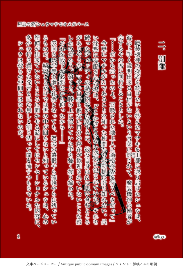 ということで20000字を突破しました。エロでどのくらいのページを使うかまだ決めてないので、最終的な字数の予定は立っていませんが、前回の淫獄と同じくらいのページ数になればいいなとは思っています。
