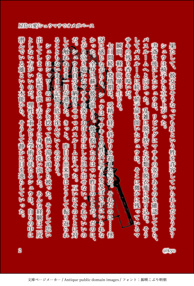 久しぶりの連休を思い切り執筆に使った@kyoさん。もう明日仕事行きたくないDEATH!笑 このままゆっくり休みながらエンドレスで文章を打っていたい。なんか私、昔、脳だけになって一生知識を詰め込まれながら生きていきたいみたいなことを云ったと思うんですけど、最近は脳に機械を繋いで手を使わずに執筆が出来たらいいなー……と思うことしきりです。人間の身体って重いよね!