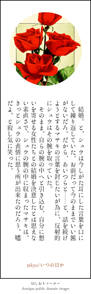 今更SSメーカーに嵌まった@kyoさん。栞を作ってみました。