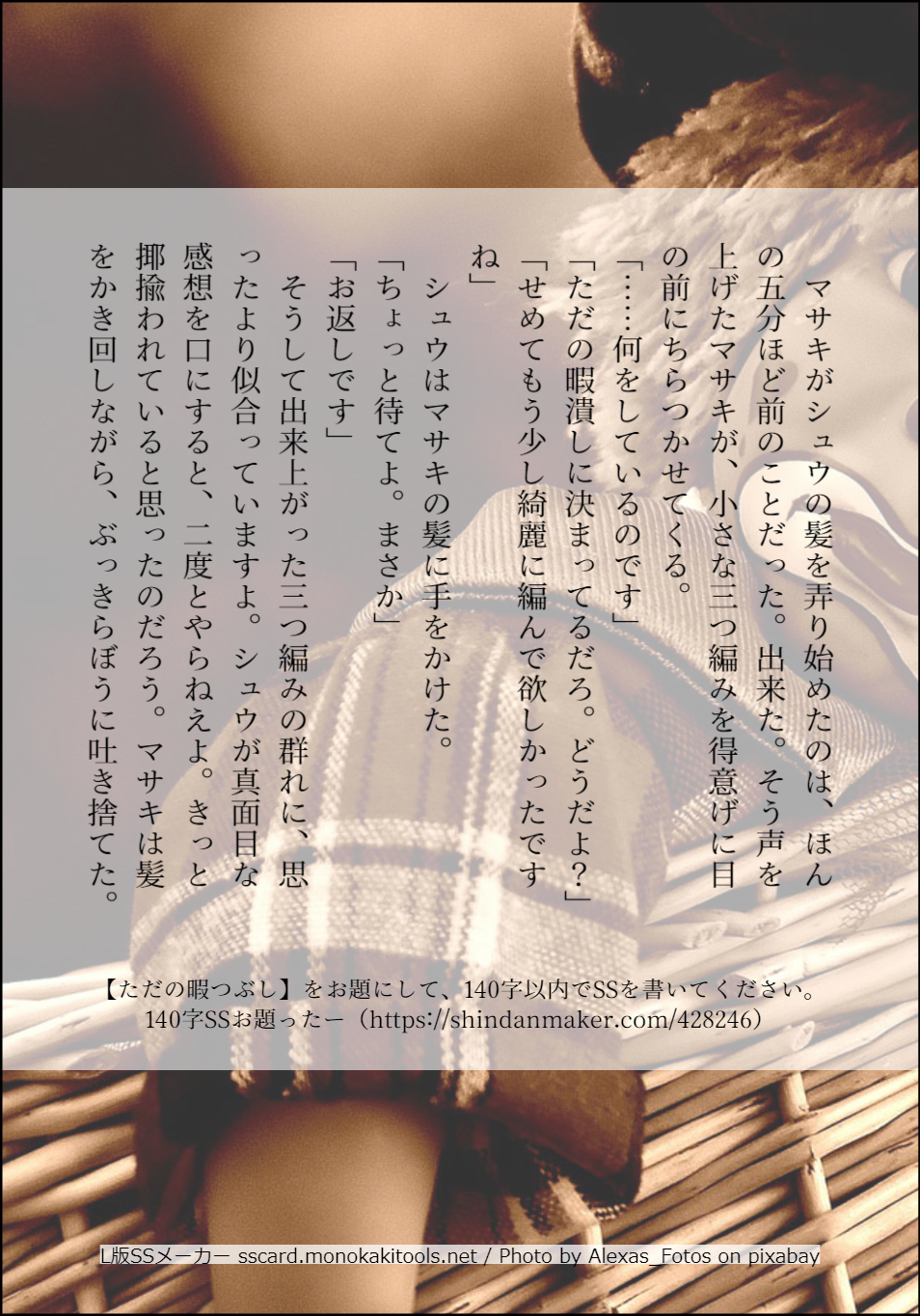 しかしゲームもプレイしたい、編み物もやりたい、本も読みたい、シュウマサ書きたいって、どこか削らないと無理ですね!私の人生!全てを手に入れるってこんなに難しいことなんだぁ。(今更感)