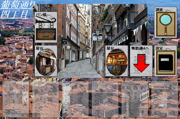 こんなに店を作ってどうする気なんだ!と自分でも思ったのですが、総当たりクリックでもイベントが進むようになっている仕様上、クリックできる場所は多ければ多いほどいいよねッ!とばかりに増やしまくってみましたッ!