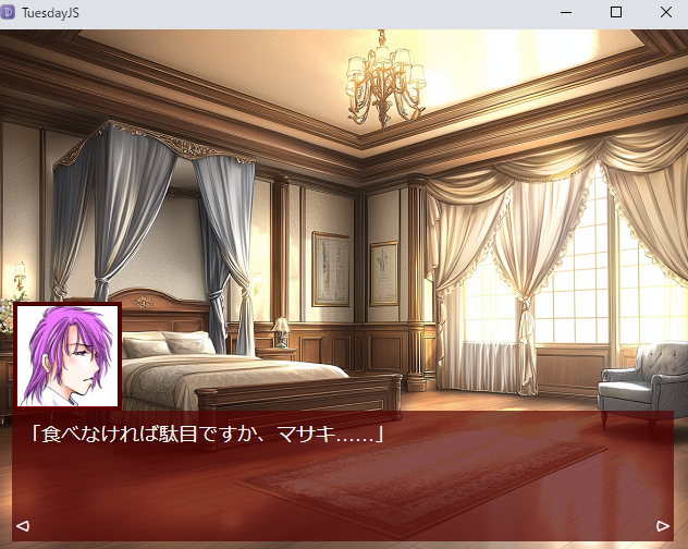 今回使っているシステムはTuesday JS ビジュアルノベル・エンジンになります。制作者さんは外国の方らしいのですが、日本語が話せるらしく、問い合わせも日本語で出来るのだそうです。