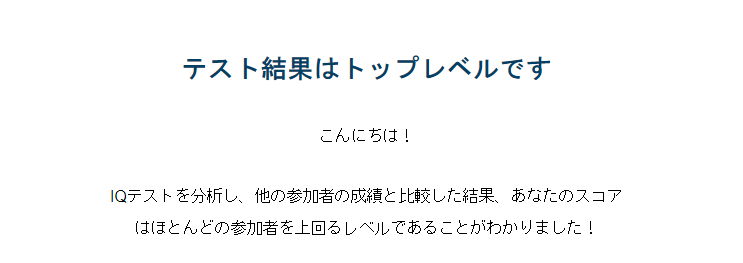 そんなことを考えていた先日、偶々XくんのプロモーションでIQテストを見かけたんですよ。ものはためしで受けてみたんですけど、受けてから有料だってわかった次第。いやお金払ってまで結果に拘るのもなあ。と思ってたら、いい結果だからお金払って詳細な結果を見ませんかとメールが届いたんです。