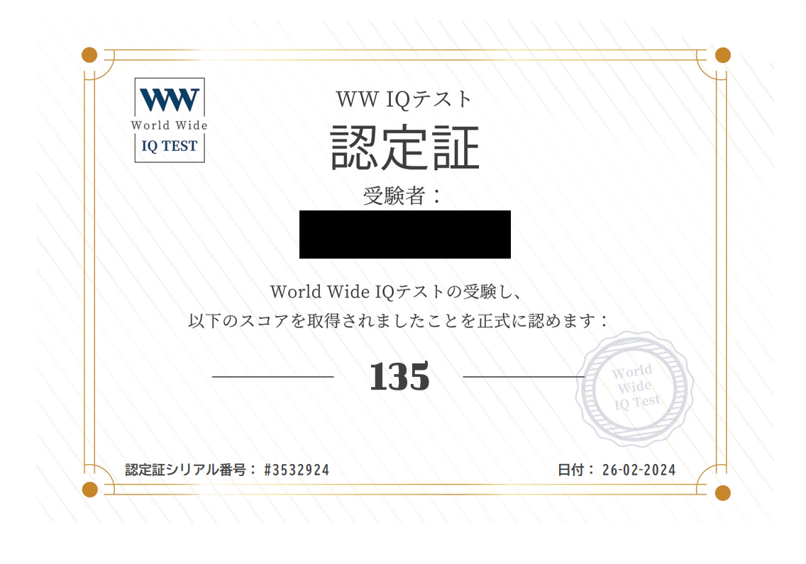 で、どうしたものか悩んだ結果、更に受けました。今度はメンサのIQテストです。