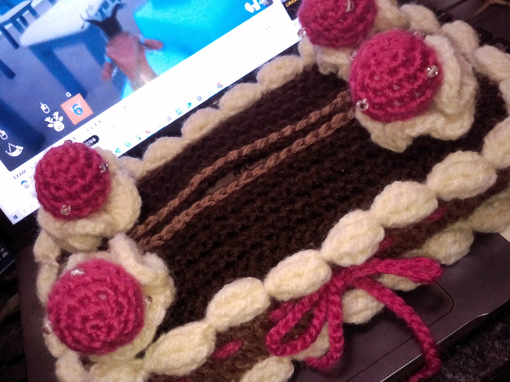 あとは生クリーム部分を編むだけです。可愛い。これの次はもうひとつの薬箱用のショートケーキケースを編むんだ……!