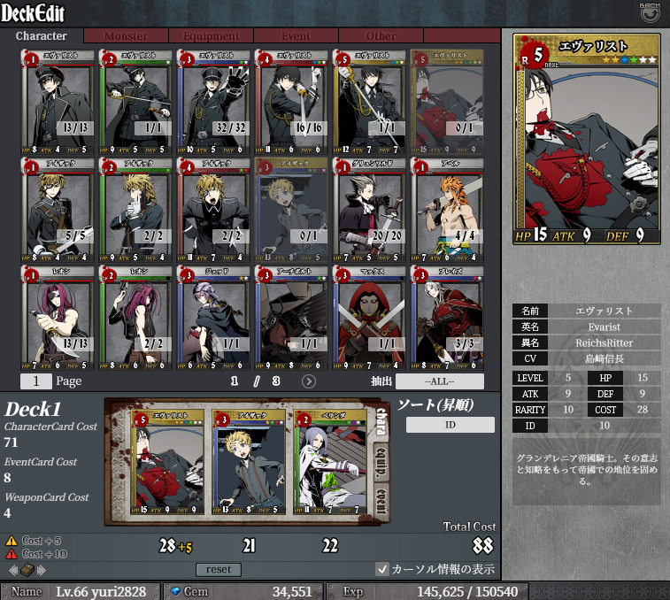 いや、いやいやいや!愛ですからね!こちとらモバゲ版から十年以上エヴァリストに愛を捧げているのですよ!どれだけ敵との相性が悪くとも私はエヴァリストを使いますよ!そして一流のエヴァリスト使いになってみせる!!!