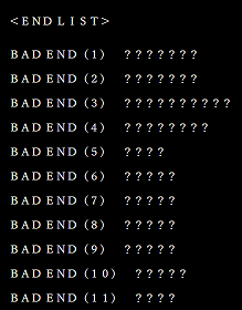 何せ13種のBADEND+3種のクリアEND=16種のエンディングです。Cookieを食わせない仕様ですので、ぶっ通しでプレイしない限り初期化されてしまうとはいえ、そのぶっ通しプレイで必要になるのではないかと思われるので、急遽組み込んでみた次第です。