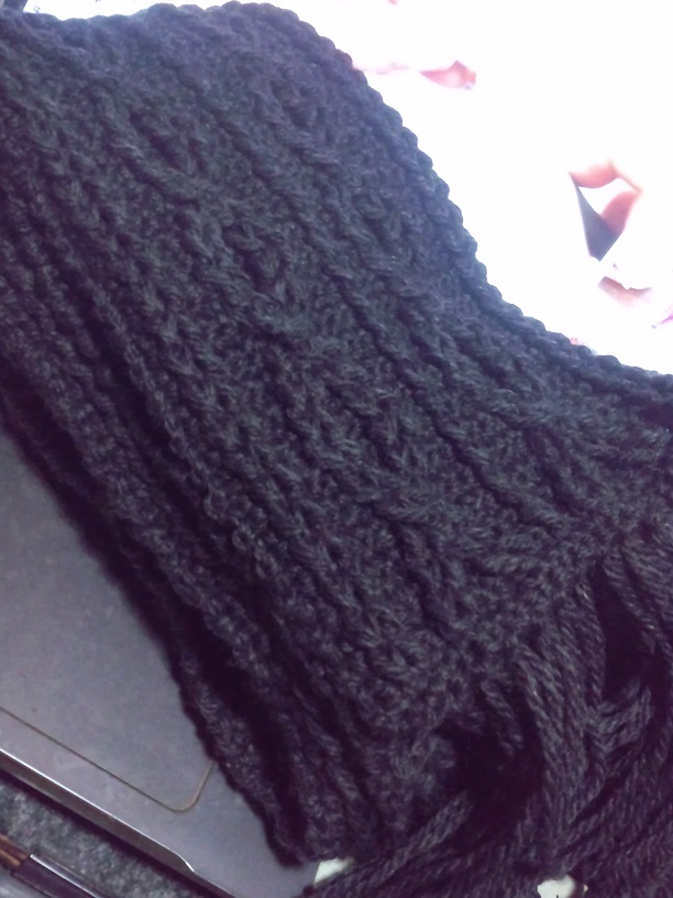 とはいえ、もうほぼ終盤。糸をほどいてしまうのも勿体ないので自分用に編み切ることに。160cmぐらいの長さですが、かさましにフリンジを付けたので見栄えはいい筈!