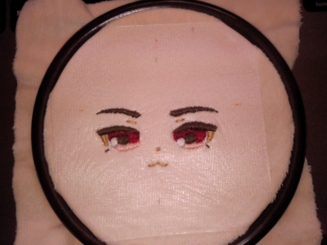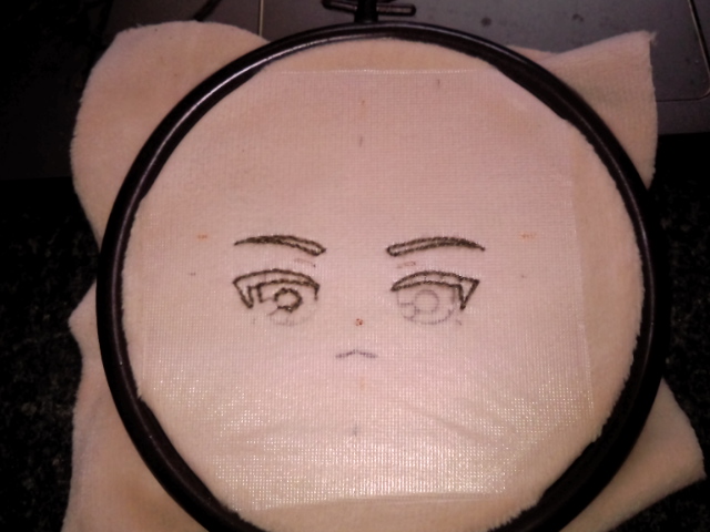 推しぬいBOOKの方に顔のデザインテンプレートがありますので、そちらを参考に目鼻口の配置を決めていざ刺繍をスタート!