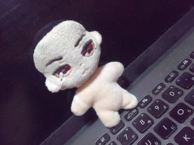 とにかく顎!顎が大問題!伸びちゃう!膨れちゃう!敗因はわかってます。推しぬい用のボアです。これが結構伸びる。故に綿を無限に詰めると膨れる。
