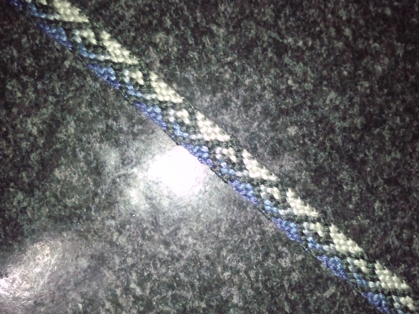 この手のタッチング結びを乱用した編み図を綺麗に編めるようになるのが目標のひとつだったのですが、まだまだ技術が足りないですね。光に透かして見ると、そこかしこに穴が開いているのがわかってしまいます。ミサンガを編んでいる動画を見て、編み方を真似しているのですが、私の手の力が足りないのか、それとも力の加減が下手なのか、結び目の大きさが均一にならない!!!まだまだ修練が必要だと思い知らされました。