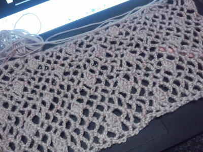 とはいえ今回はネット編みなので、進みが滅茶苦茶早いです。冬に使えるものではないので、今編むものではない気がしますが、ネット環境がなくなった時に手持ちの編み物本から選んで編み始めたものなので……