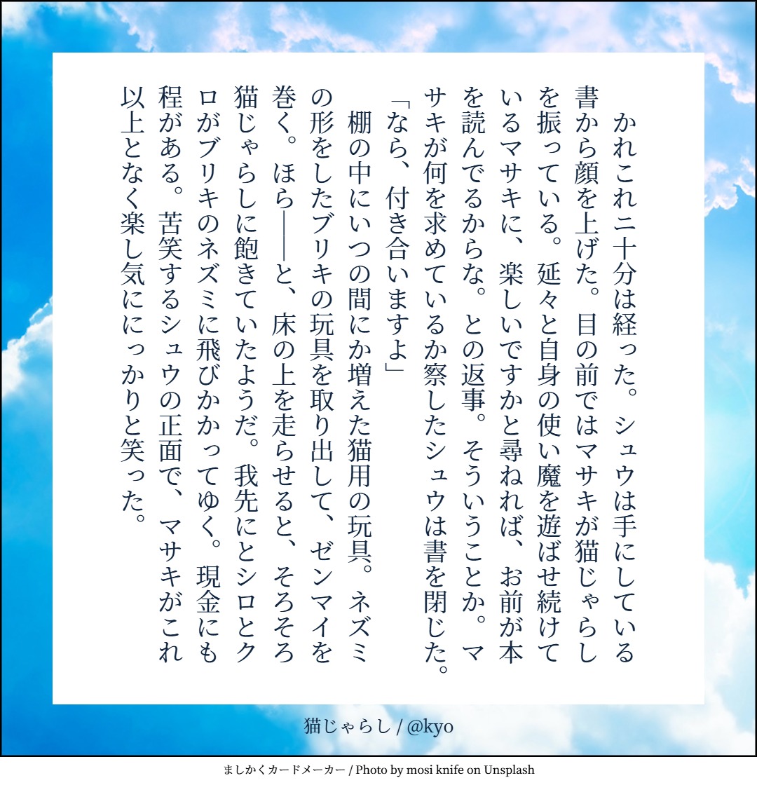 最後に、性懲りもなく140字SSにチャレンジした記録を。