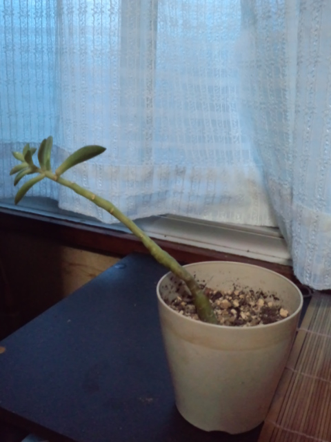今日一日で10°以上傾いたんですけど、これはどうしたらいいのでしょう??いや、ちゃんとくださった方に相談したんですけど、私の部屋が西向きで日当たりがあまり良くない以上、太陽の光を探した多肉植物が曲がってしまうのは仕方がないと言われてしまったんですよ!でも、でもですよ?ここまで曲がる!?wwww