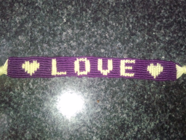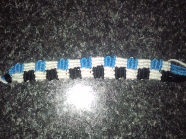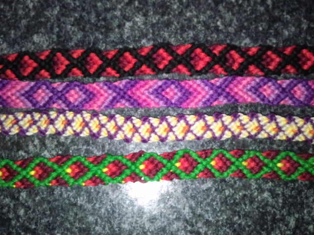 簡単な斜め結びから始め、V字結びを会得したミサンガ。