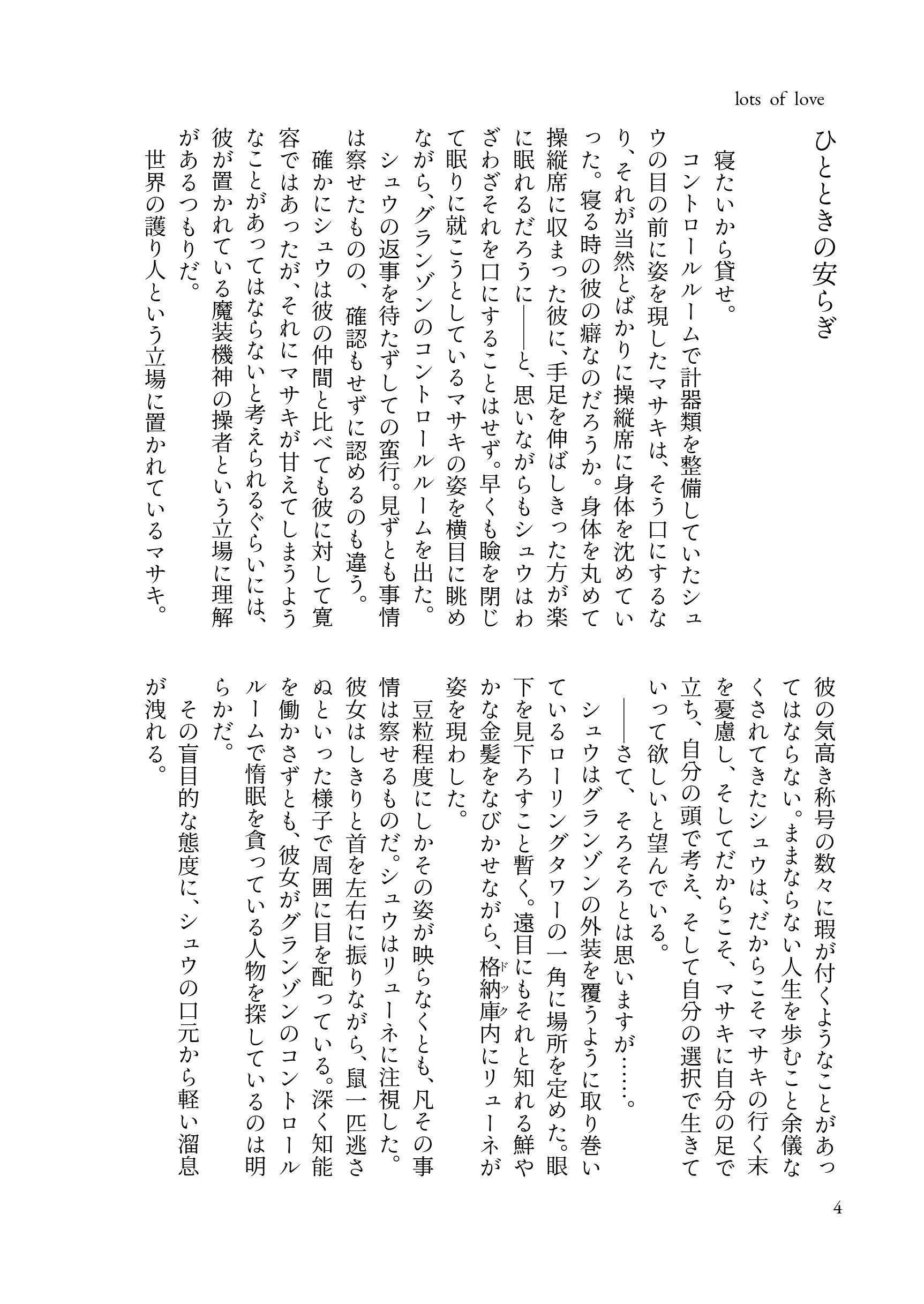 今回、全体的に真面目且つ暗めなのにも関わらず、表紙がくっそ明るいんですけど、何故かって、最初は「シュウマサらぶらぶ本」を作るつもりでいたからなんです。作っている内にどんどん脇に逸れていきましたけど!!!!(折り込み部分があるので、通常の表紙データとは異なって変形です)