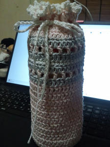 ダイソーのリサイクルコットンでペットボトル用のカバーを編みました。色合いが駄目なので、もう一個だけ編むつもりです。編みかけの帽子もあるし、糸買いにいかねば。