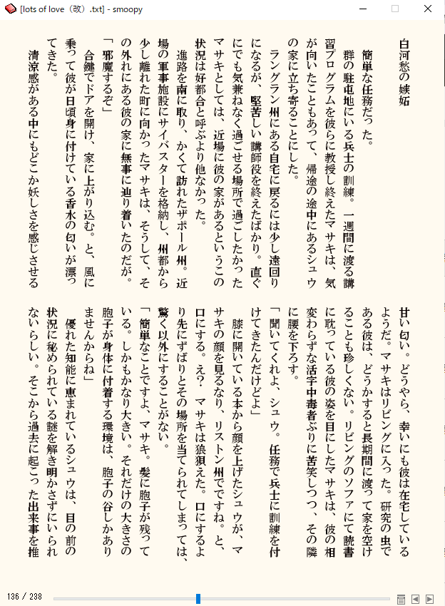 ヨミスケくんを利用していますけど、今回そういった意味で大幅に手直したのは「白河愁の憂さ晴らし」だけです。でも直したら趣味に走り過ぎてしまったみたいで、専門用語が多過ぎるって云われちゃいましたけど!