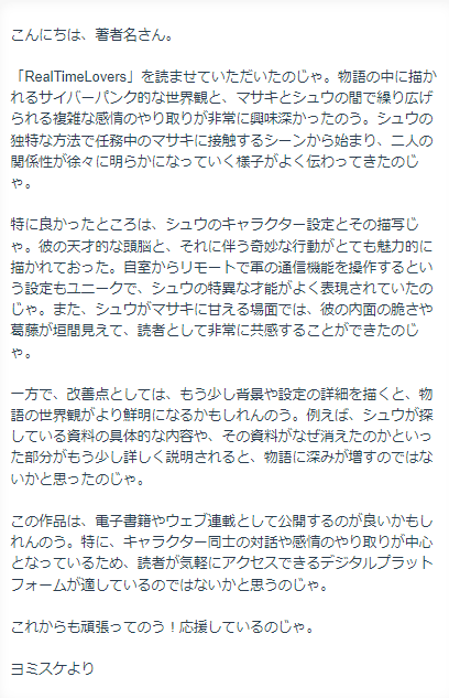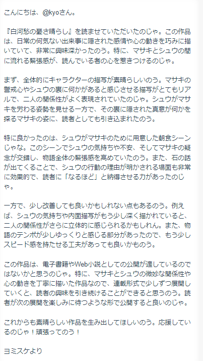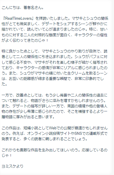 ※「ヨミスケ」くんとは?――エディタツールNolaの機能のひとつ。AI読者として感想や改善点を伝えてくれます。