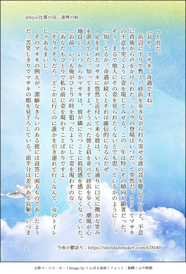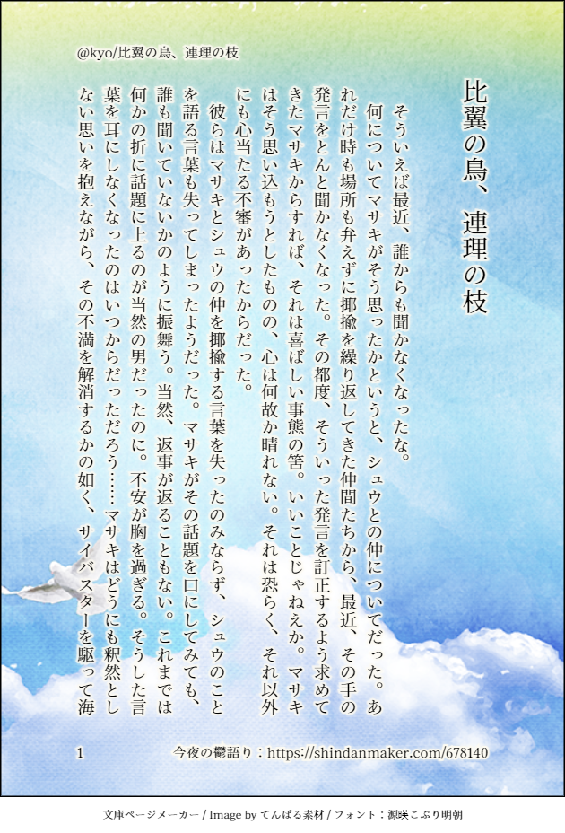 今回は番外編。他の診断メーカーのお題を引いたものになります。